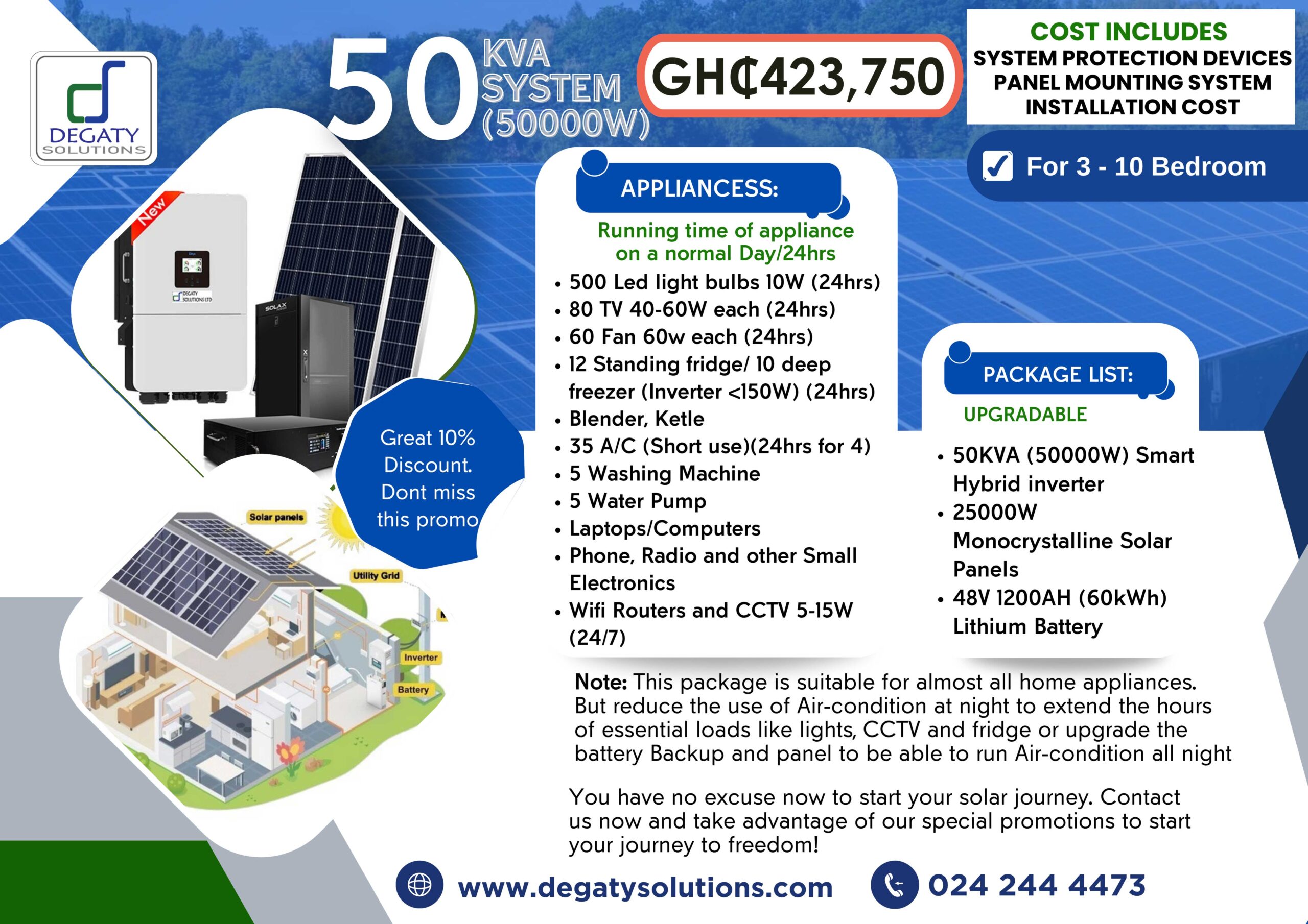 50KVA, 60kWh Backup Lithium battery, 25KW monocrystalline solar panel size