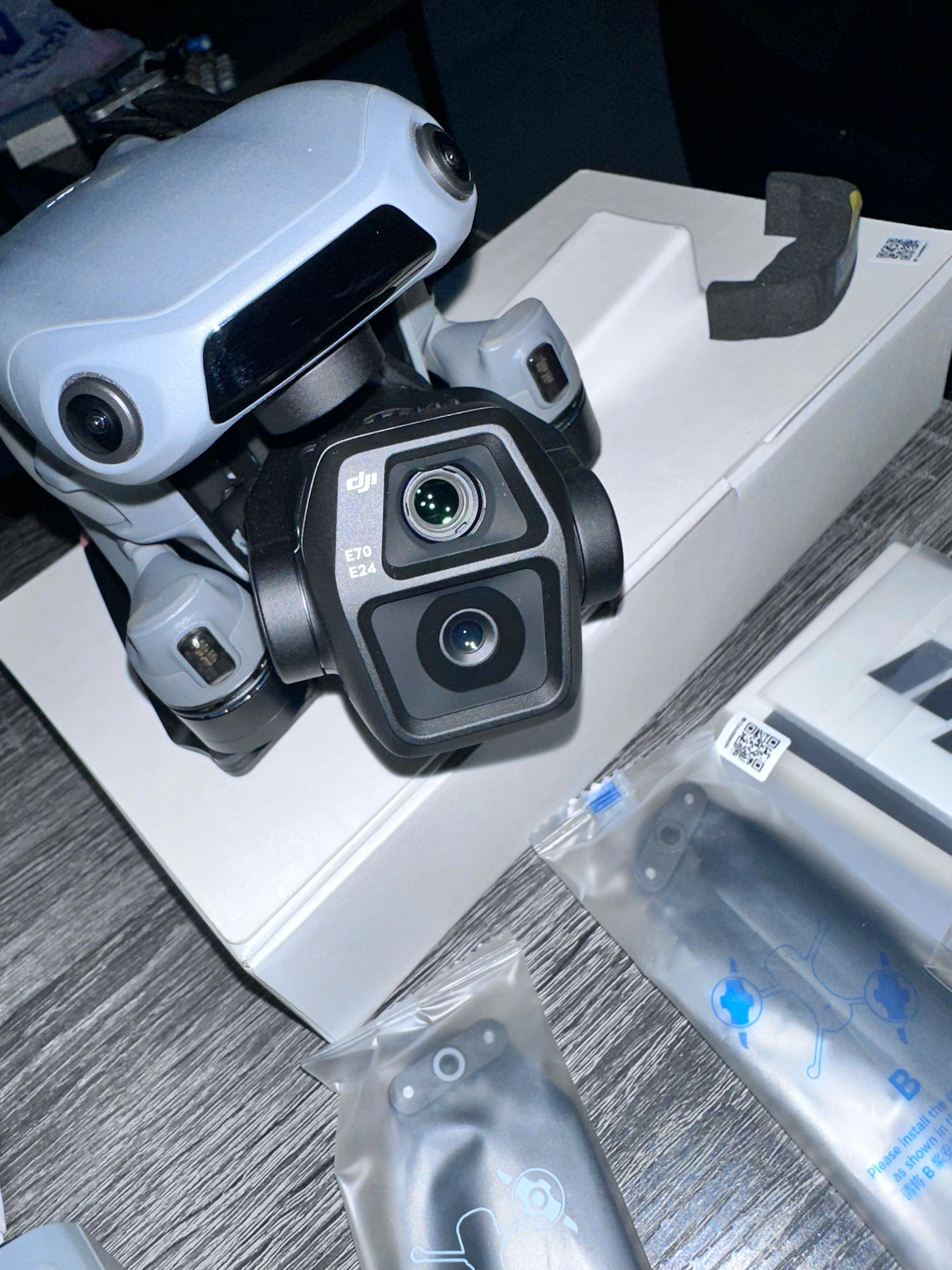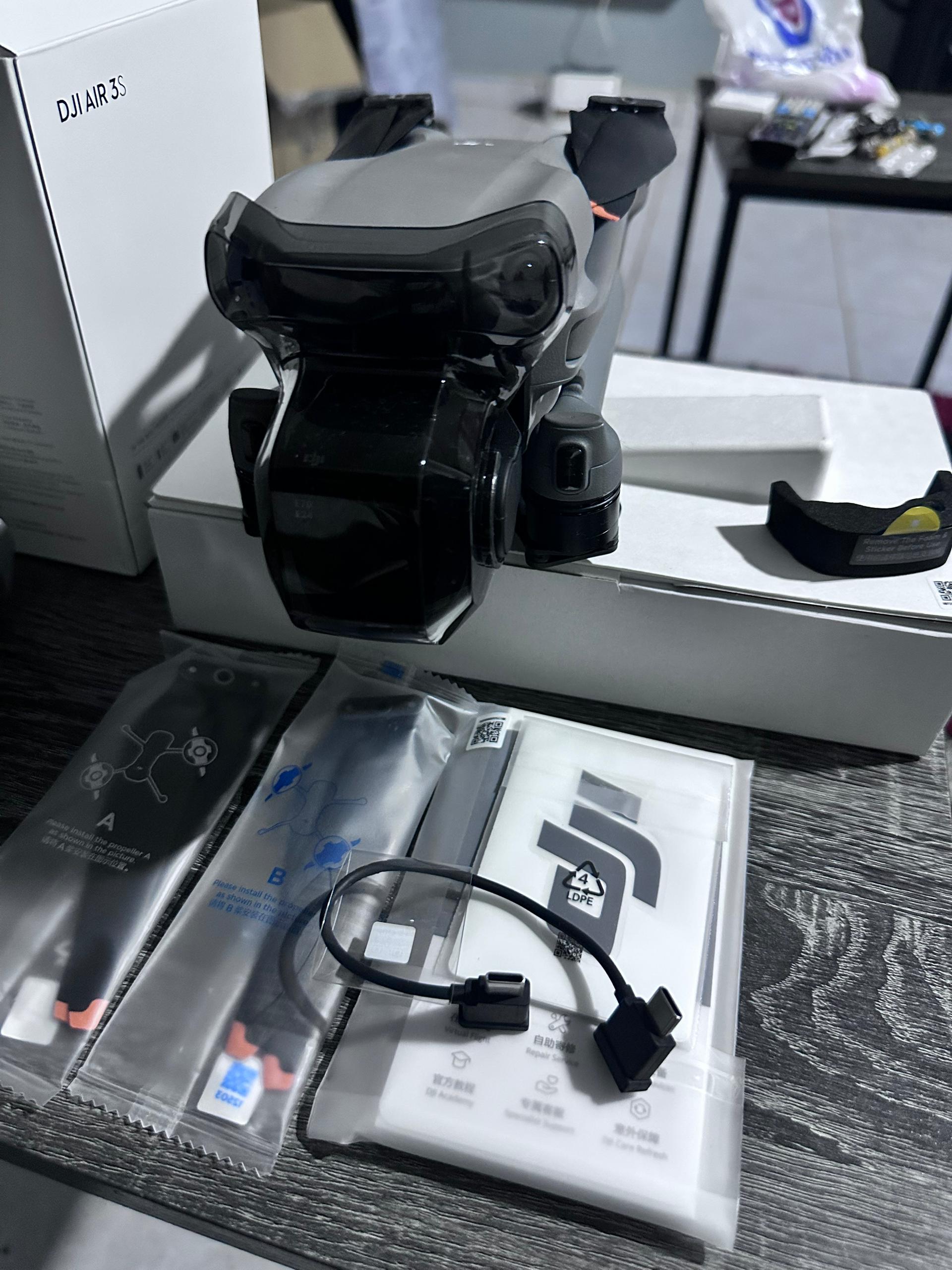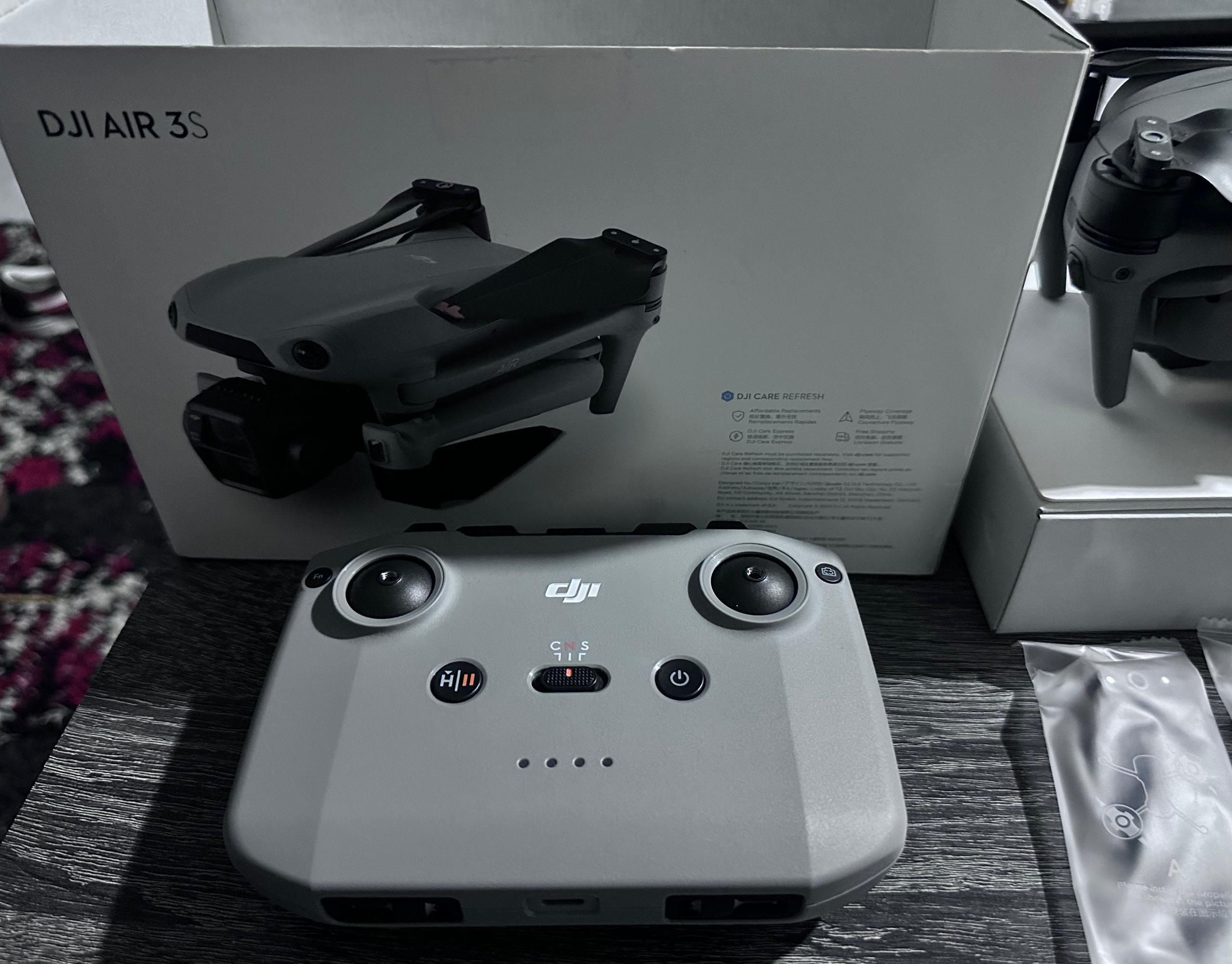 The DJI AIR 3S brand new open box (never used) available for sale. This Professional GPS Drone is designed for both beginners and experts, featuring a 31-40 minute maximum flight time and a 2KM image transmission distance. This foldable drone is made of durable ABS plastic, weighing only 300g with compact dimensions of 143x143x55mm, making it highly portable.