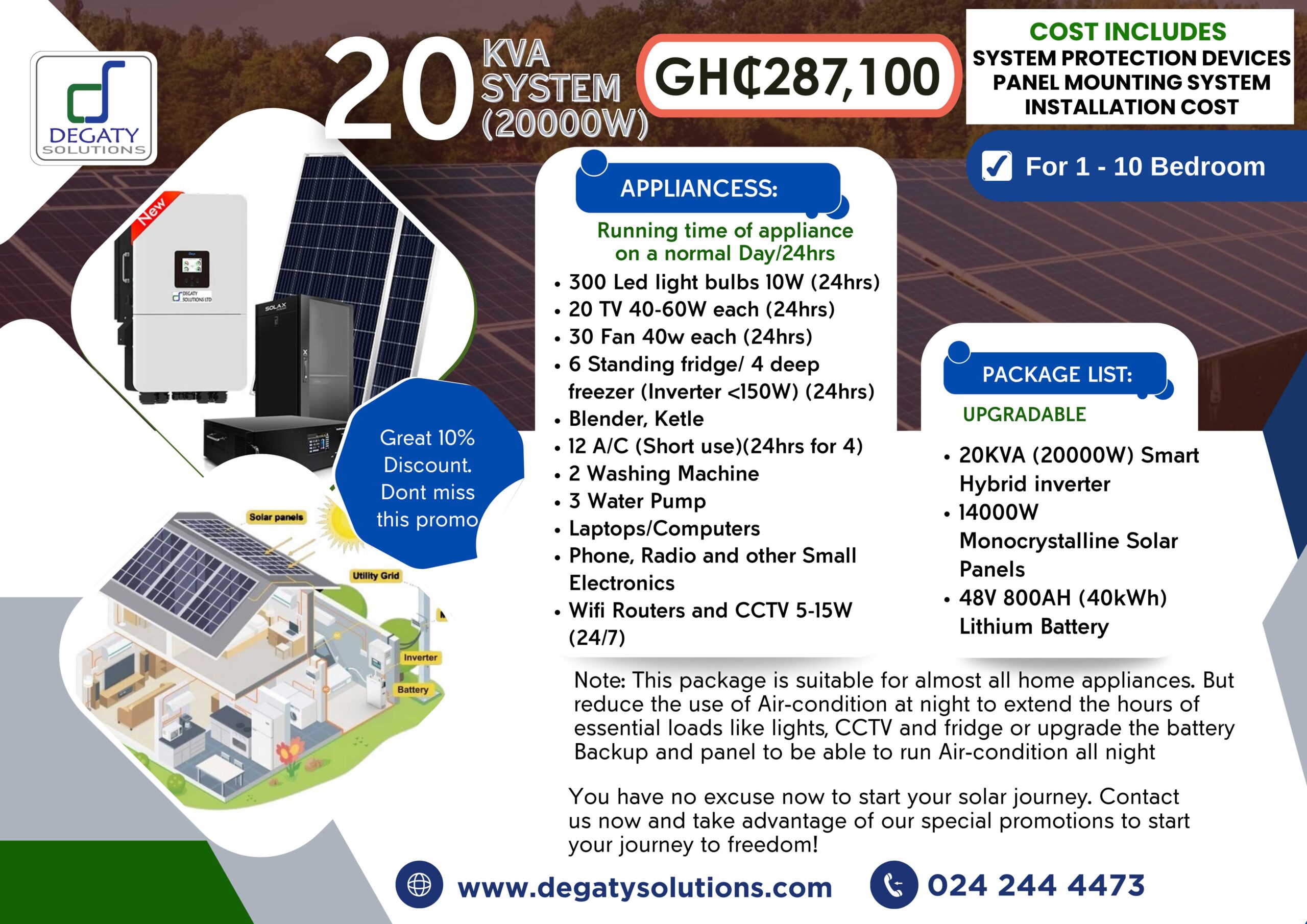 20KVA, 40KWH BACKUP LITHIUM BATTERY, 14KW MONOCRYSTALLINE SOLAR PANELS